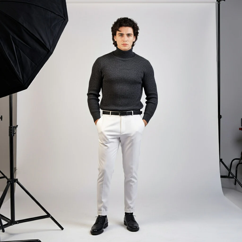 Cozy up in style with our Melange Dark Grey Turtleneck Rib Knitted Shirt. The unique mélange color and turtle neck design add a touch of sophistication, while the warm rib knitted fabric will keep you comfortable and stylish. A must-have for those with a taste for the finer things in life.